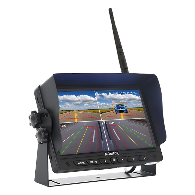 Kamera Tampilan Dalam Kabin Pemantauan Pengemudi AHDCarleader 7 Inch BSD Blind Spot Detection Wireless Monitoring System, sistem kamera nirkabel digital yang terintegrasi dengan fungsi deteksi AI, mendukung deteksi dan alarm pejalan kaki dan kendaraan, memperingatkan pengemudi tentang situasi sekitar kendaraan. Hingga 4 saluran kamera nirkabel 720P dipasangkan secara otomatis, setiap saluran mendukung fungsi deteksi AI. Pantau menu kalibrasi AI bawaan untuk menyesuaikan ukuran area deteksi sesuai dengan posisi dan sudut pemasangan sebenarnya. Monitor Mendukung fungsi opsional perekaman loop, mendukung penyimpanan kartu SD hingga 256GB.