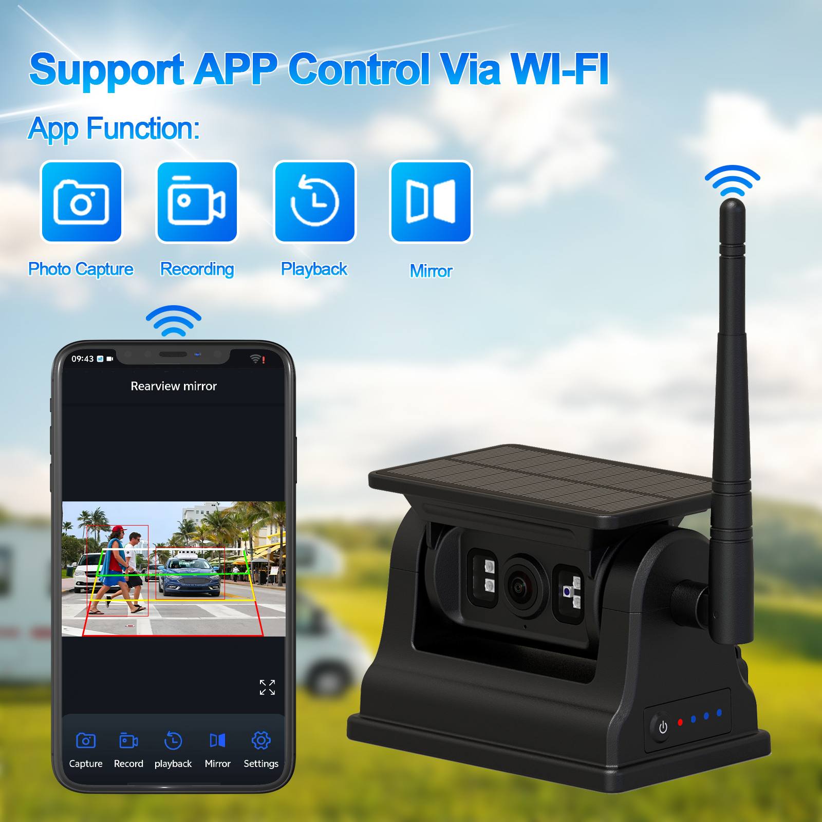 Monitor Kendaraan IPS 2AV AHD 9 Inci Mendukung CarPlay MultimediaPemimpin mobil Deteksi AI Kamera WIFI Pembalik Isi Ulang Bertenaga Surya dengan Basis Magnetik, tidak memerlukan kabel, pemasangan mudah dengan basis magnet, kamera pembalik nirkabel bertenaga surya dilengkapi baterai isi ulang 10500mAh berkapasitas besar dan memiliki fungsi penglihatan malam, juga dapat didukung oleh energi matahari, hemat energi, dan perlindungan lingkungan. Kamera mendukung fungsi deteksi AI, dapat mendeteksi pejalan kaki dan kendaraan, jugadukungan untuk terhubung dengan ponsel melalui WIFI, memungkinkan pengguna mengambil gambar, merekam video dan memutarnya, juga menyesuaikan kalibrasi AI, dll. Kamera ini adalah pilihan terbaik Anda untuk peralatan pemantauan keamanan kendaraan untuk mengemudikan kendaraan Anda dengan aman.