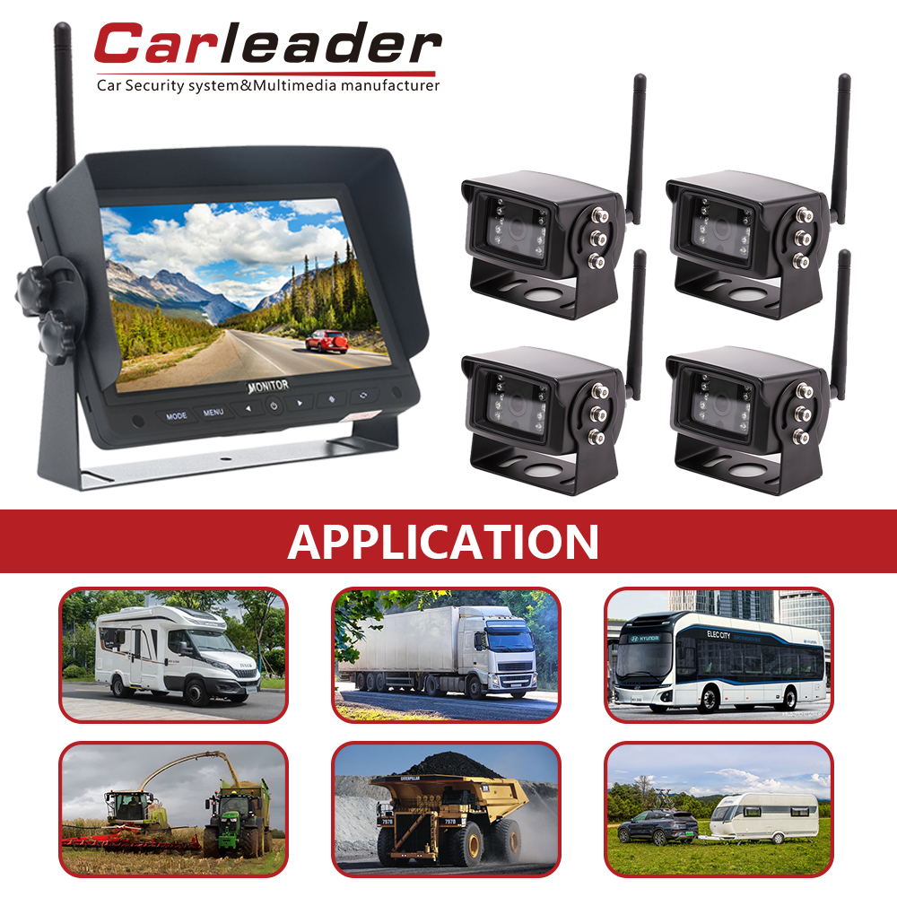 Keserbagunaan: Sistem Kamera Tampilan Terpisah 2CH Nirkabel Digital Carleader 7 Inci 2.4G dapat digunakan pada berbagai kendaraan, termasuk RV, bus, truk, trailer, dll.