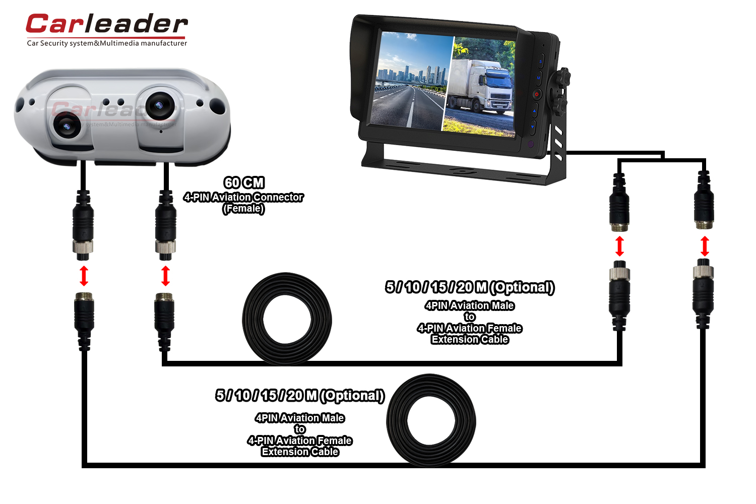 Pemimpin mobilakan menawarkan dua solusi pengkabelan yang berbeda untuk Kamera Tampak Belakang Tugas Berat Lensa Ganda AHD Starlight, agar sesuai dengan kebutuhan pengkabelan yang berbeda: