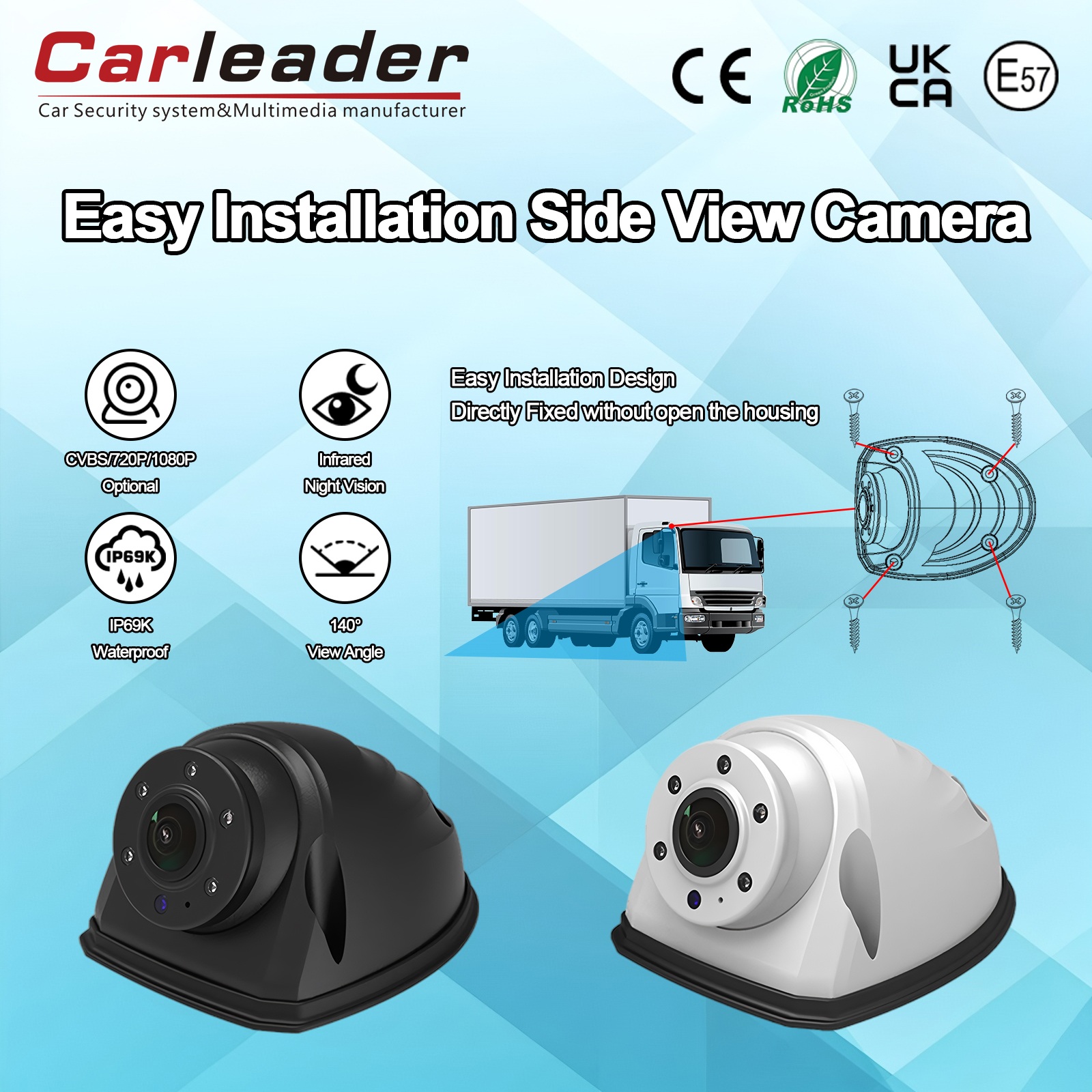 Menggabungkan sudut pandang lebar, kinerja cahaya rendah yang luar biasa, dan peringkat IP69K Luar Biasa, Carleader Carleader AHD Pemasangan Cepat Kamera Tampak Samping Tugas Berat Putih memberikan kesadaran visual yang dapat diandalkan saat kamera lain gagal. Fleksibilitas operasionalnya, termasuk opsi voltase dan pemasangan rotasi, memastikan integrasi yang lancar ke dalam beragam sistem, meningkatkan keselamatan dan efisiensi operasional dalam kondisi terberat.